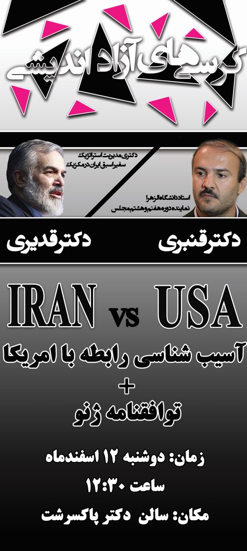 12 ا سفند دوشنبه تهران: دانشگاه آزاد تهران مرکز دانشکده فنی مناظره با اقای قنبری در مورد توافق ژنو