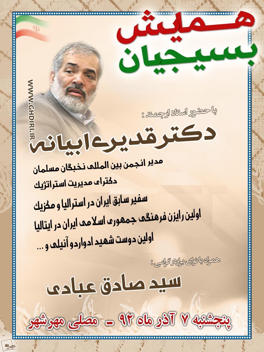 تهران (قلعه حسن خان سابق) شهر قدس: دانشگاه آزاد پیرامون ادواردو به دعوت بسیح دانشجویی ساعت 13:30