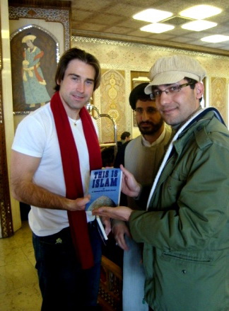 لازم به ذکر است در هنگام ظهر، پس از اقامه نماز جماعت، با حضور علی استون و به امامت حجت الاسلام نواب (یکی از اعضای انجمن)، دکتر قدیری ابیانه و استون تلفنی با یکدیگر گفتگو کردند و در پایان هم کتاب "این است اسلام" نوشته دکتر قدیری ابیانه به زبان انگلیسی به همراه فیلم مستند انگلیسی شهید ادواردو آنیلی به استون اهدا شد.