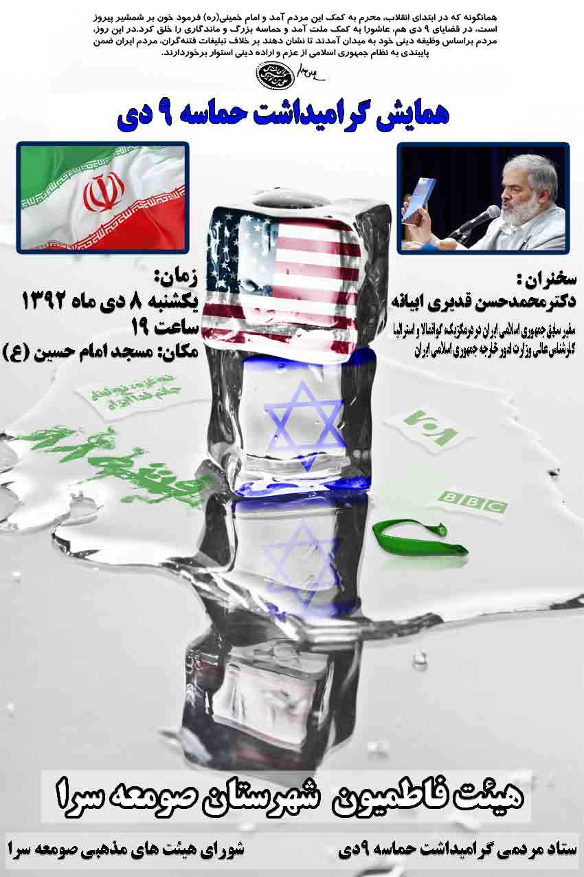 برنامه این هفته سخنرانی های قدیری ابیانه در لنگرود، صومعه سرا، آمل، تهران و جوشقان قالی در مورد 9 دی