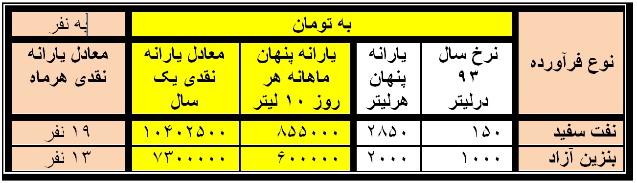 یارانه پنهان ماهانه هر روز 10 لیتر |